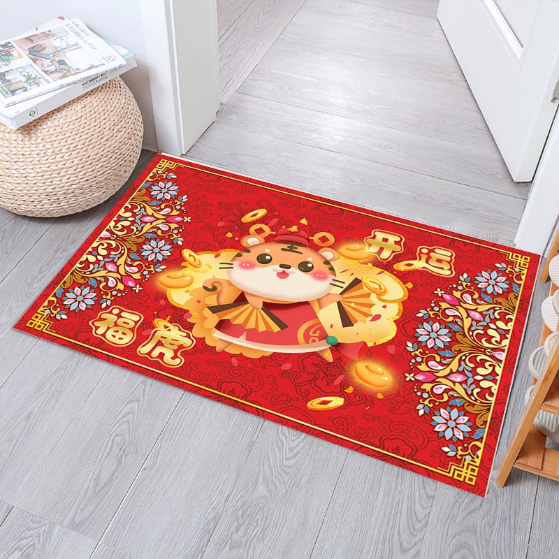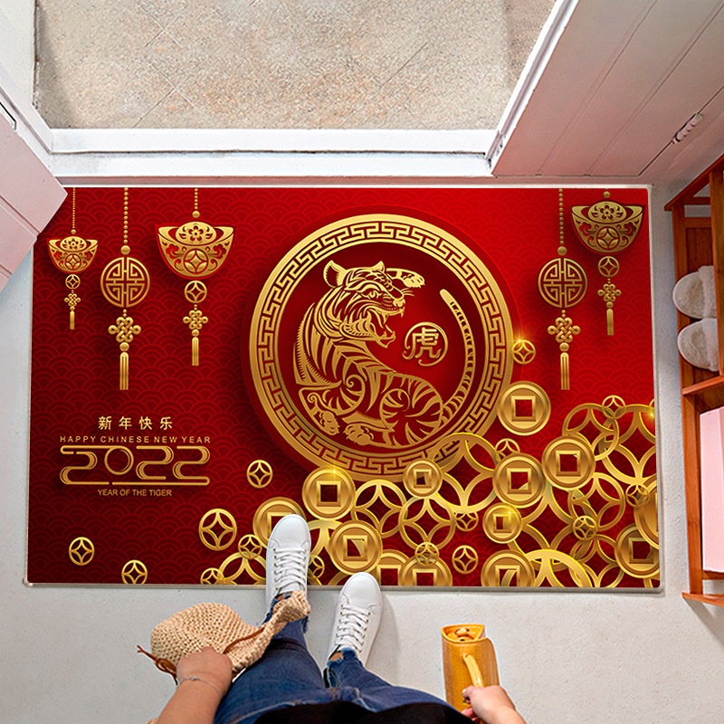 Thảm Chùi Chân 3D Sắc Đỏ Tết Nhâm Dần 2022 Họa Tiết Nổi Bật (thấm nước chống trượt KT 40x60cm)