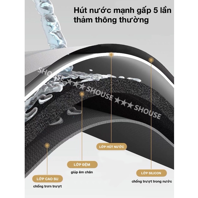 Giới thiệu Thảm Chùi Chân lau chân Silicon vân đá SHOUSE siêu thấm hút nước đế cao su chống trơn trượt trang trí phòng tắm