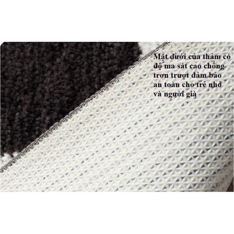 - Chất liệu: bề mặt thảm bằng lông nhung mịn, mặt đáy bằng chất liệu cao su có độ ma sát rất cao giúp chống trơn trượt