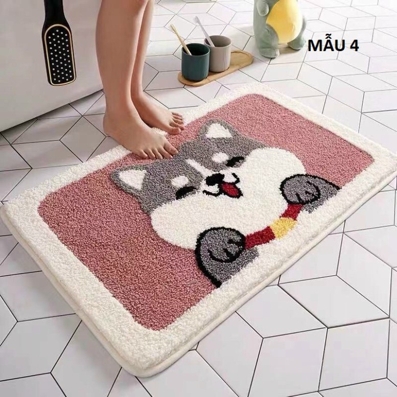 Thảm chùi chân lông cừu 3D chống trượt mềm mại siêu thấm, lông dày thấm hút cực tốt, thảm chân thời trang