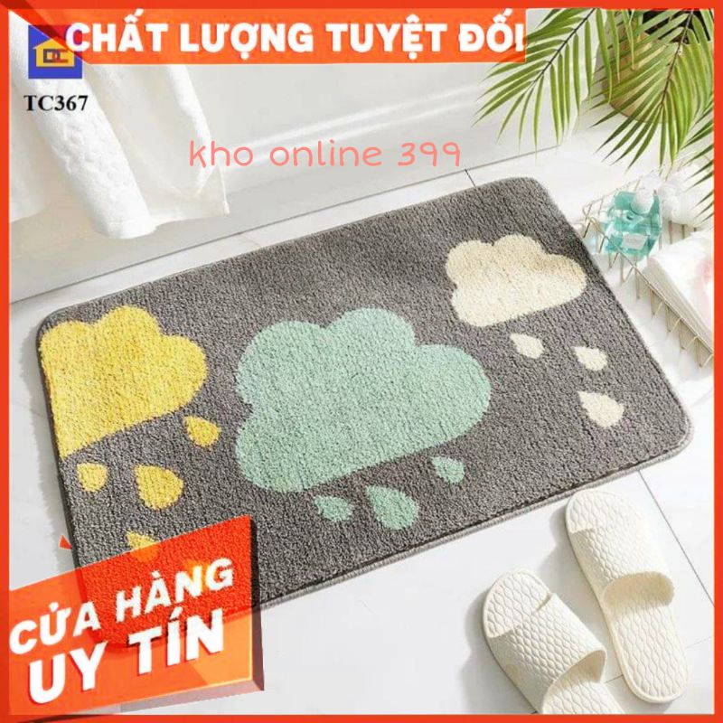 * Chất liệu: thảm lau chân có mặt trên là lớp vải len dày, êm, mềm mịn có khả năng thấm hút nước khá tốt