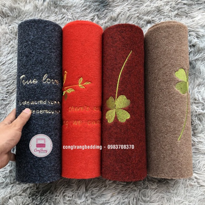 Tên sản phẩm: Thảm lau chân, thảm chùi chân thêu cả ba lá may mắn.- Kích thước: