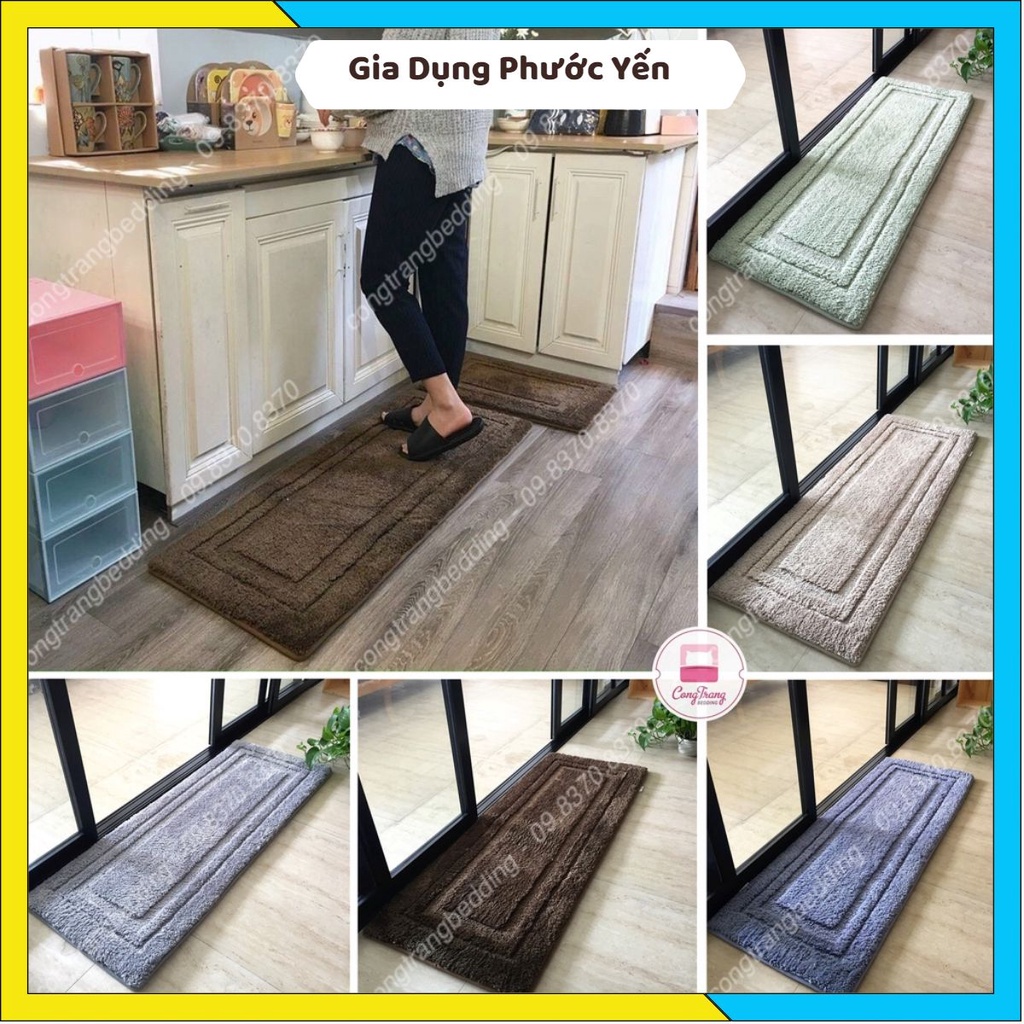 - Chất liệu: bề mặt thảm bằng sợi thô, mặt đáy bằng chất liệu cao su sần tăng ma sát chống trơn trượt.