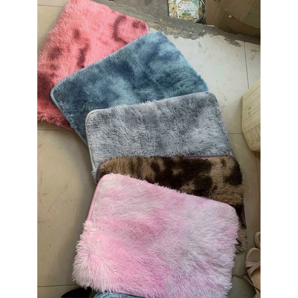 Thảm lông loang kích thước 40x60cm có gai chống trượt, vừa trang trí, chùi chân, hoặc làm nền chụp ảnh đa năng. Thảm lau khô, độ thấm nước ít.--------------------------------------------------------------------