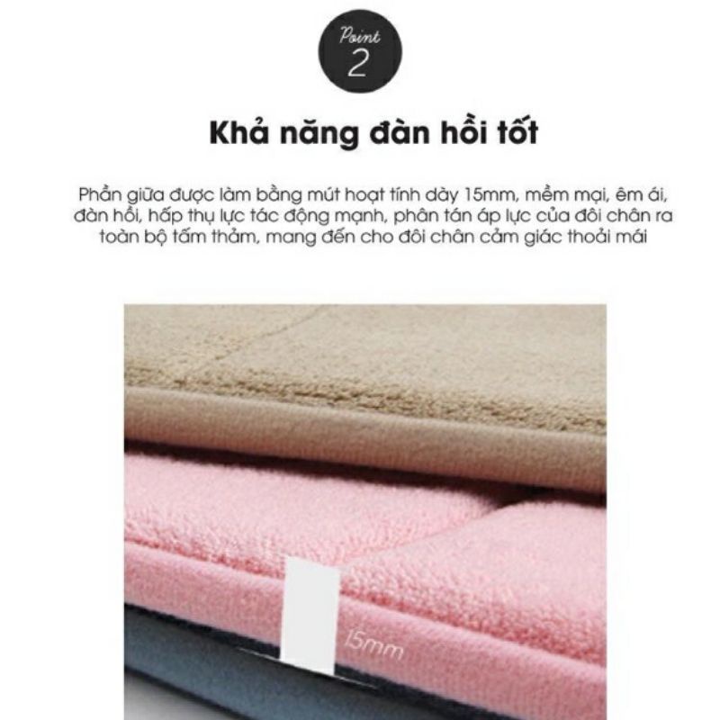 Chất liệu mềm mịn, Độ đàn hồi cao, chống trơn trượt tốt, giúp bạn sử dụng dễ dàng và tiện lợi hơn. Thích hợp đặt ở nhiều vị trí như trước cửa ra vào, phòng ngủ, nhà tắm.