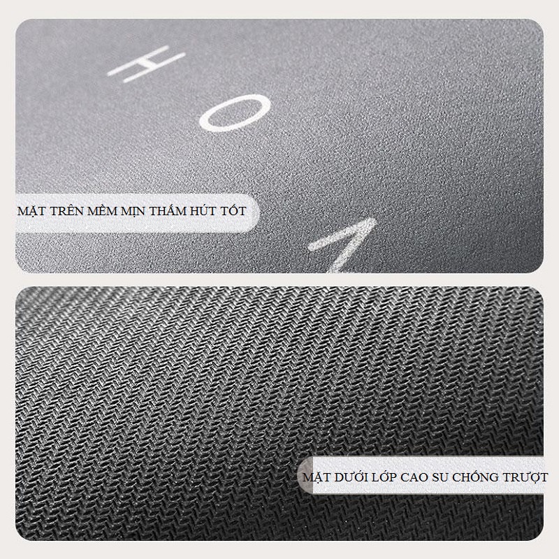 - Không trơn trượt, an toàn cho người già và trẻ nhỏ. Vật liệu Diatomite với những lỗ siêu nhỏ có khả năng tự thấm, hút ẩm siêu nhanh và ngay lập tức giải phóng lượng ẩm này vào không khí.