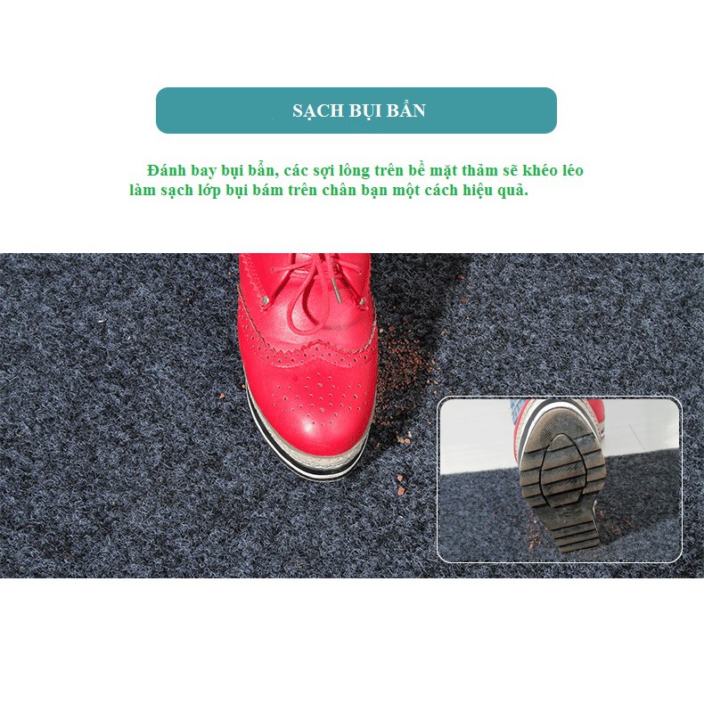 Có khả năng giữ bụi cao. Ngoài ra thảm lau chân còn là “chuyên gia” trong việc đánh bay bụi bẩn, các sợi lông thô trên bề mặt thảm sẽ khéo léo làm sạch lớp bụi bám trên chân bạn một cách hiệu quả.
