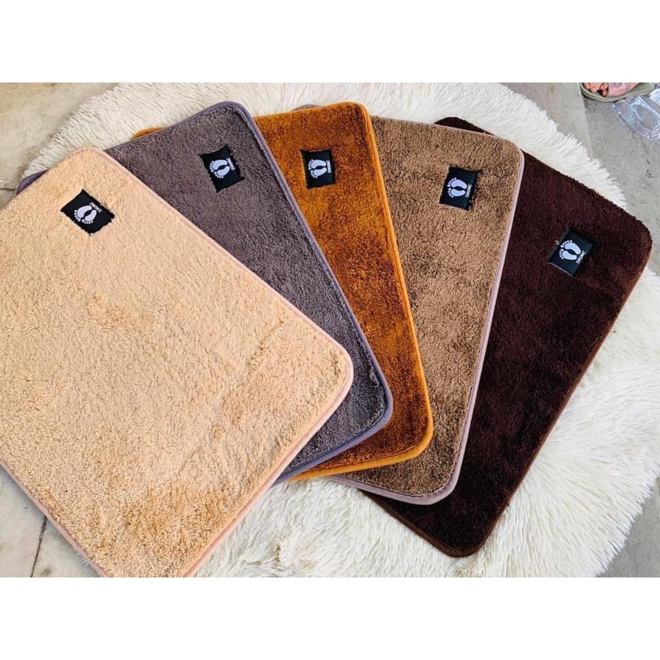 Thảm lót sàn được làm từ vải bông mịn, thấm hút tốt, tạo cảm giác êm ái cho đôi chân.