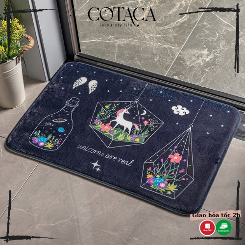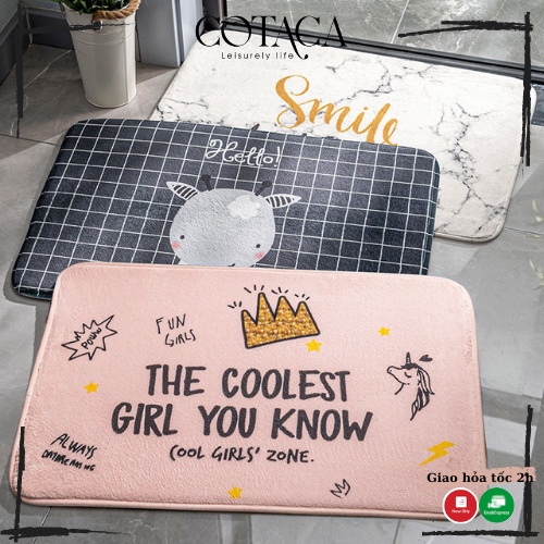 Thảm chùi chân, thảm lau chân vải ép thấm nước tốt, màu đẹp hình dễ thương kích thước 60x40cm