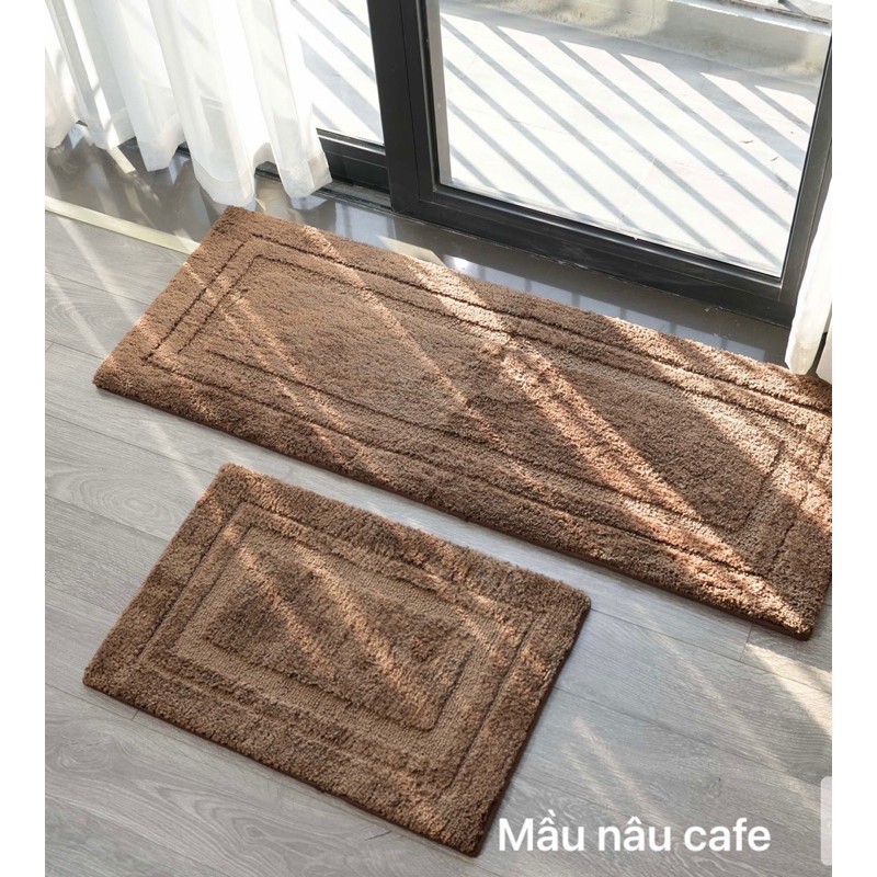 - Chất liệu : Mặt trên là lớp lông dầy cao cấp , thấm hút nước tốt , cho máy giặt hoặc giặt tay được, mặt dưới là vải không dệt kết hợp với các vân hoa cao su chống trơn trượt.
