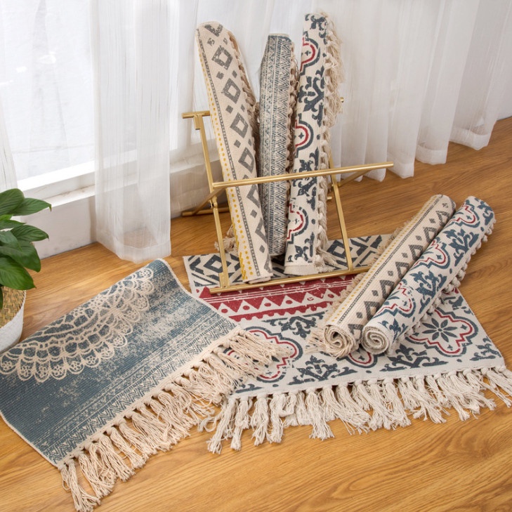 ✔ Thảm được dệt bằng vải cotton thấm hút cực tốt, đem đến sự gọn gàng cho căn phòng của bạn