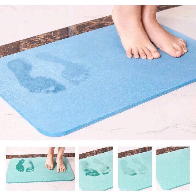 - Thay thế cho tấm thảm vải truyền thống, dùng để thấm khô nước trên bàn chân sau khi ra khỏi phòng tắm. Thành phần cấu tạo từ vật liệu hóa thạch Diatomite có khả năng siêu thấm nước và bay hơi nhanh giữ cho bề mặt thảm luôn khô ráo