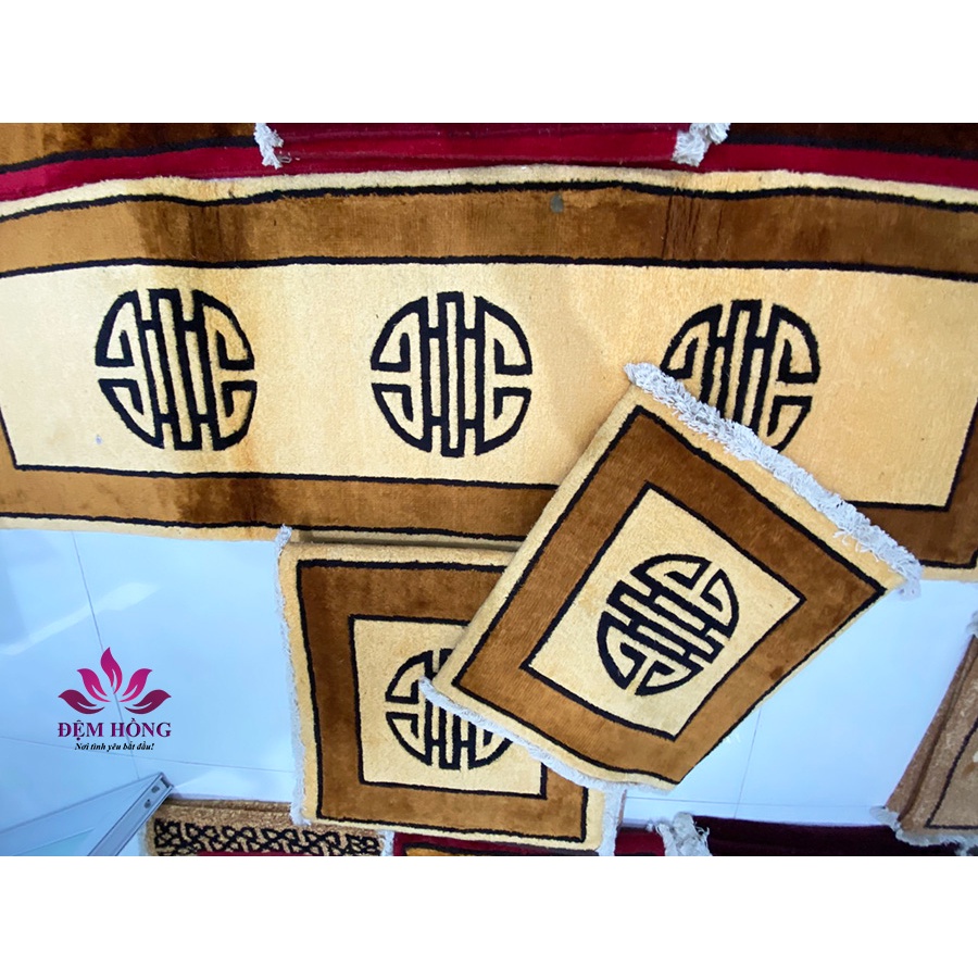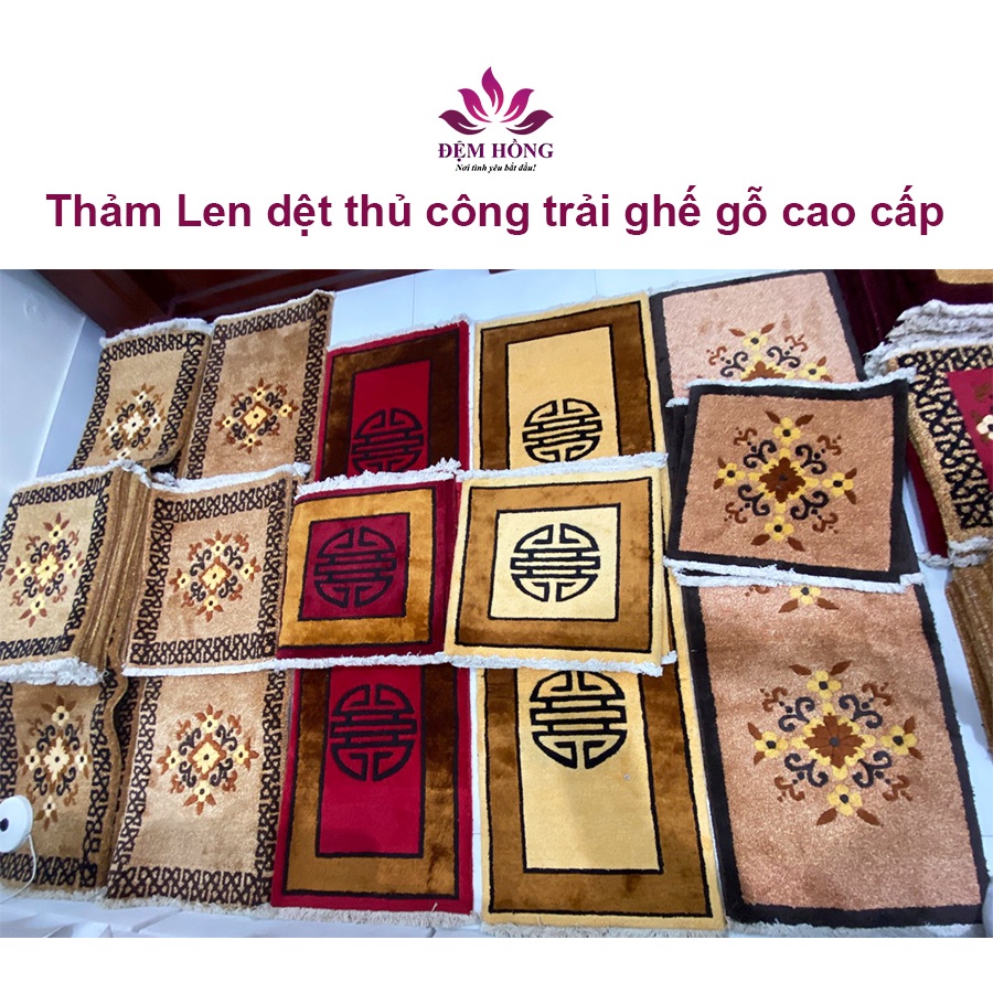 Thảm ghế gỗ cao cấp chất liệu len được dệt thủ công tại Việt Nam, là một trong những mặt hàng chất lượng, nổi tiếng của Việt Nam từ xa xưa, mang đến cho khách hàng sự ưng ý, tâm đắc đối với mặt hàng này. Ngày nay, mẫu mã đã có chút thay đổi để theo kịp thời đại nhưng những nét cổ kính, trang trọng vẫn được các nghệ nhân lưu giữ.