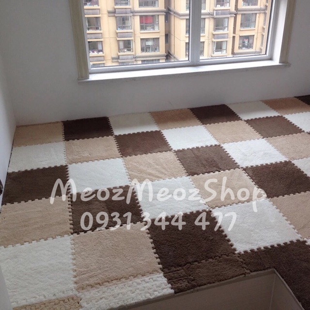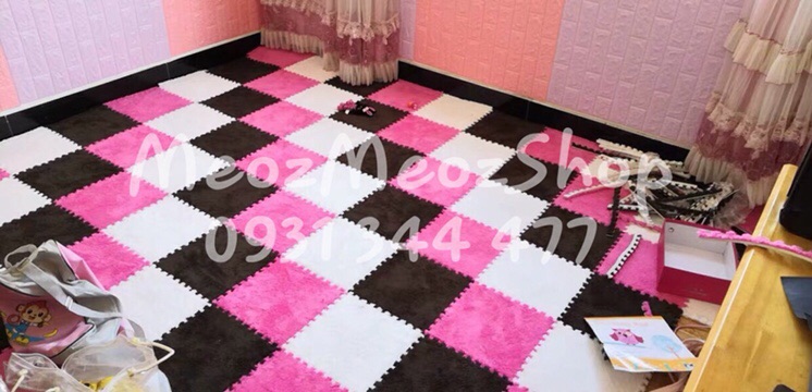 Với giá bán 20k/miếng :Thảm ghép với kích thước 30*30cm dày 1cm được làm từ chất liệu xốp với mặt trên là lông ngắn rất dễ chịu khi sử dụng