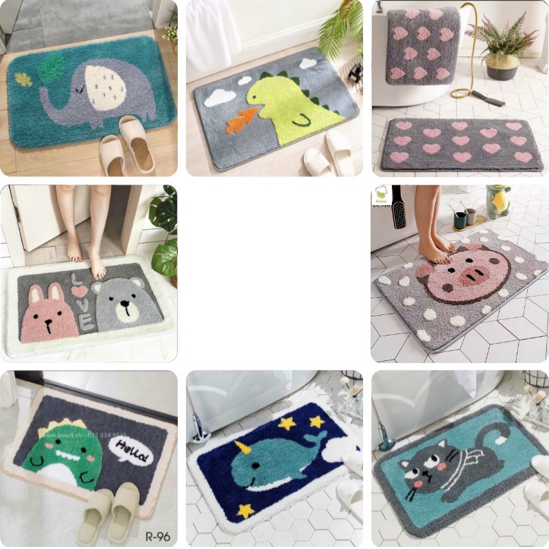 Thảm lau chân hình thú, thảm chùi chân 3d 40x60 nhiều màu lựa chọn.Thảm lau chân lông cừu dày dặn, hút ẩm tốt thích hợp lau qua chân hoặc làm: thảm trang trí, thảm chùi chân cửa phòng khách, phòng bếp, phòng ngủ, phòng tắm (độ thấm nước kém hơn các loại thảm khác 1 chút)