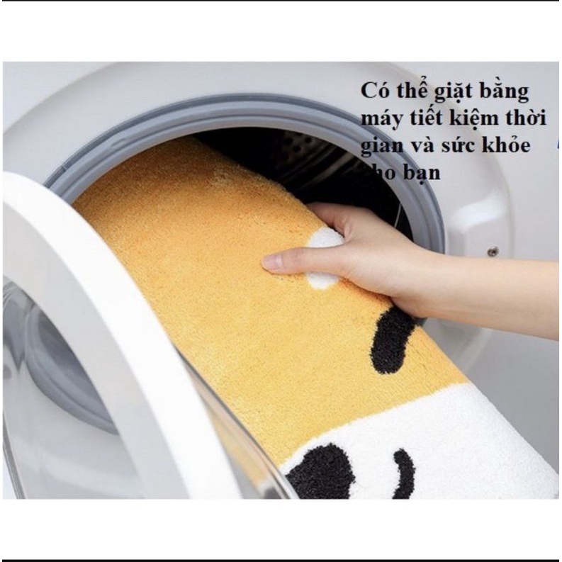 - Mặt trên là lông cừu màu sắc vui nhộn, mặt sau là lớp gai chống trượt, có thể giặt bằng máy, giặt nước lạnh (nên cho vào túi giặt để tránh bị móc sợi)