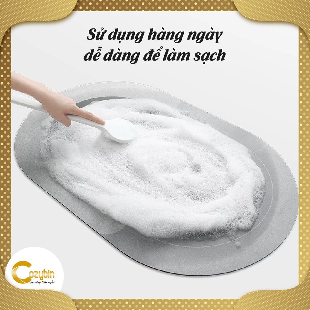 🌊 Thảm lau chân silicon dễ dàng vệ sinh và làm sạch, cơ chế tự bốc hơi nước nhanh.