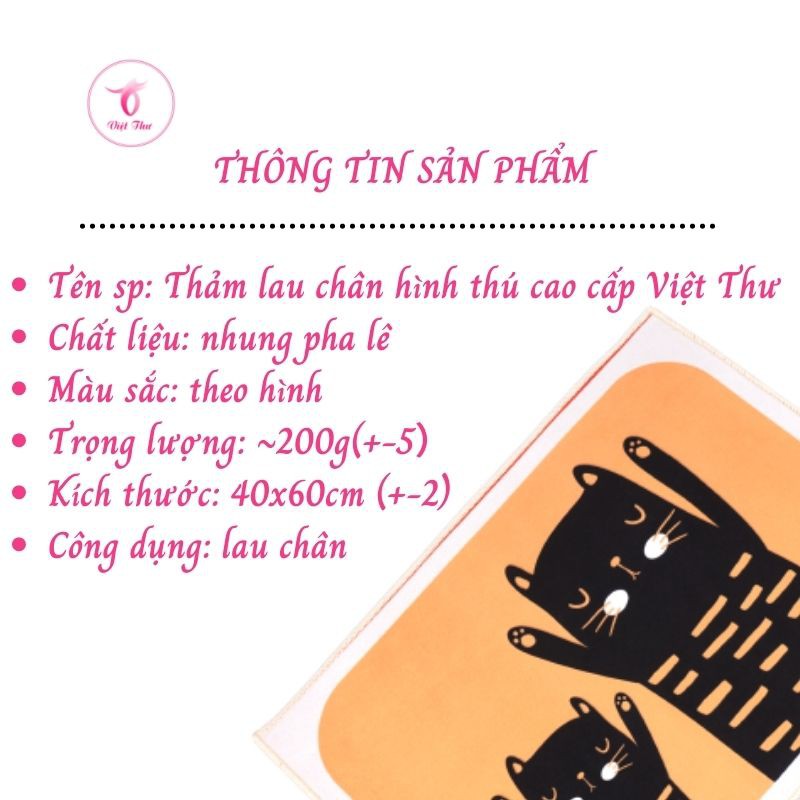 Thảm lau chân, thảm chùi chân hình thú cao cấp Việt Thư mềm mịn, thấm nước, chống trượt, 40x60cm, 200gr1. Mô tả sản phẩm Thảm lau chân, thảm chùi chân hình thú Việt Thư