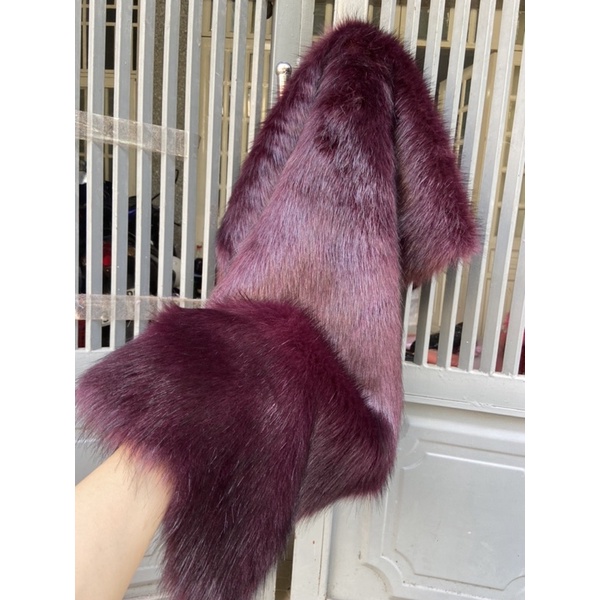 Mẫu lông dài đỏ đô phù hợp chụp nail , mỹ phẩm và trải bàn trang điểm