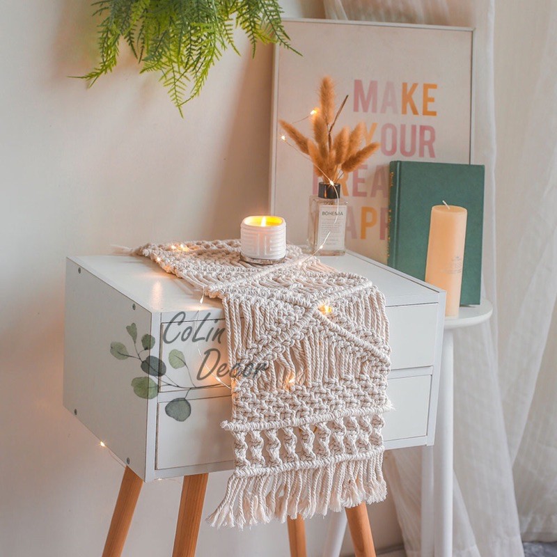Thảm macrame trải bàn, bàn trang điểm trang trí decor vintage