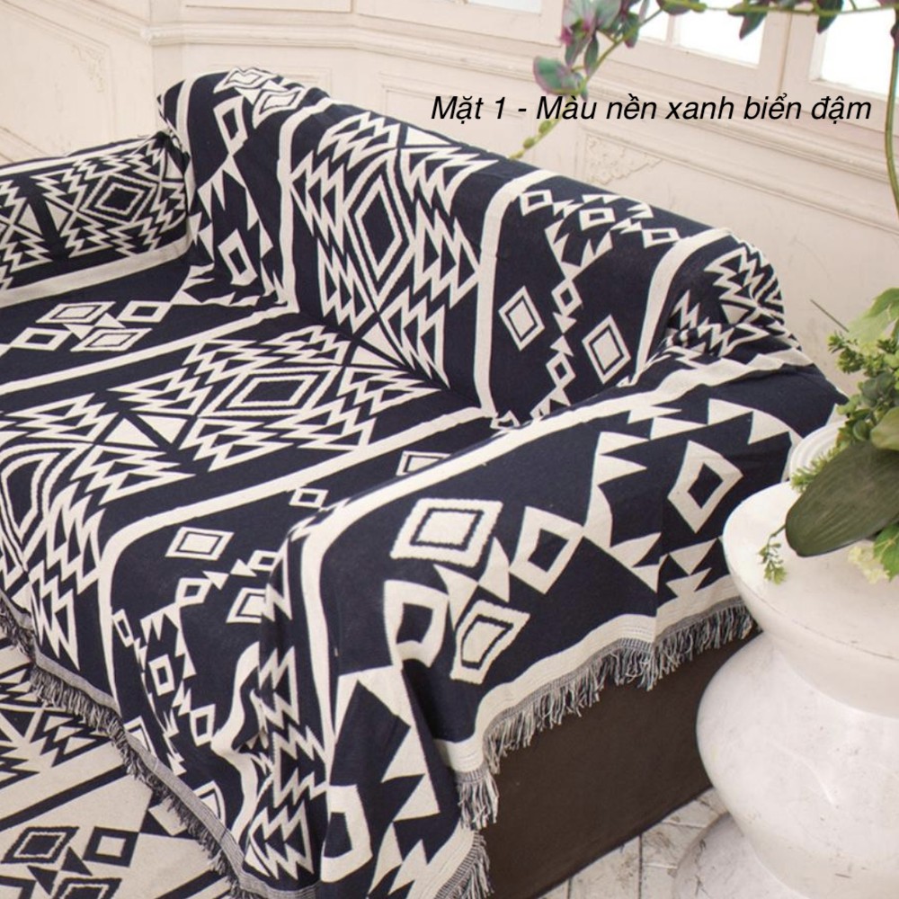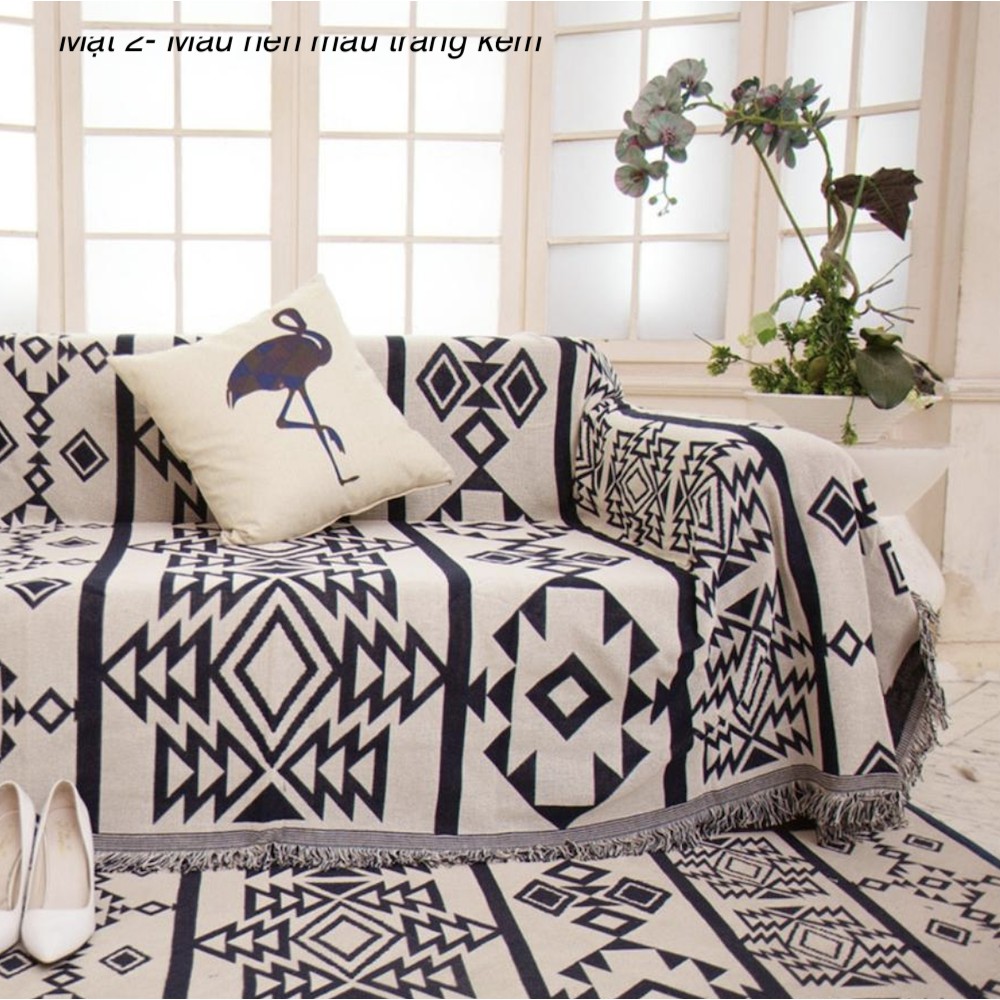 Thảm phủ ghế sofa sử dụng 2 mặt 100% cotton- Thảm 2 lớp, sợi cotton dày, kích thước lớn có thể sử dụng cho nhiều mục đích: trang trí ghế sofa, trải sàn phòng khách, trải chân giường phòng ngủ, thảm phủ trang trí giường, thảm picnic ...