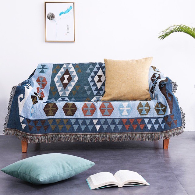 Nhà cửa & Đời sống > Trang trí nhà cửa > Vỏ bọc nội thất || Thảm phủ sofa, khăn trải sofa trang trí hoạ tiết hình học xanhCòn hàng