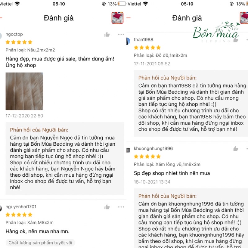 🏡 Shop chuyên cung cấp các sản phẩm chăn ga gối thảm, phù hợp nhu cầu cả bốn mùa. Các sản phẩm của shop có nguồn gốc rõ ràng, giá cả cạnh tranh do trực tiếp sản xuất/ nhập khẩu/ phân phối hàng chính hãng công ty/ hàng ga gối thiết kế, đặt may theo yêu cầu riêng. Đến với Bốn Mùa Bedding, mọi nhu cầu cho giấc ngủ của bạn sẽ được thỏa mãn. Hân hạnh được phục vụ Quý khách!