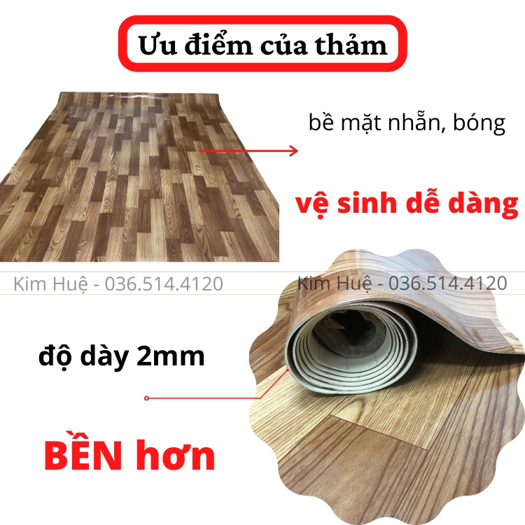 Thảm simili lót sàn dày 2mm giả vân gỗ