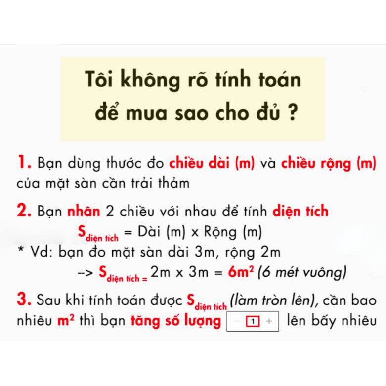 - Bạn đặt số lượng 1 là 1m vuông, shop cắt: 1mx1m