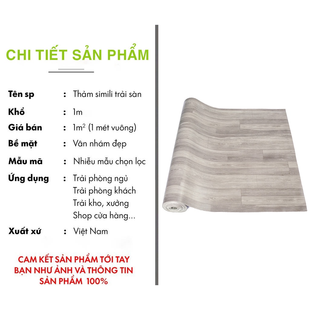Thảm trải sàn simili, thảm lót sàn giả gỗ xám trắng chống nước nền nhựa pvc nhám khổ 1m