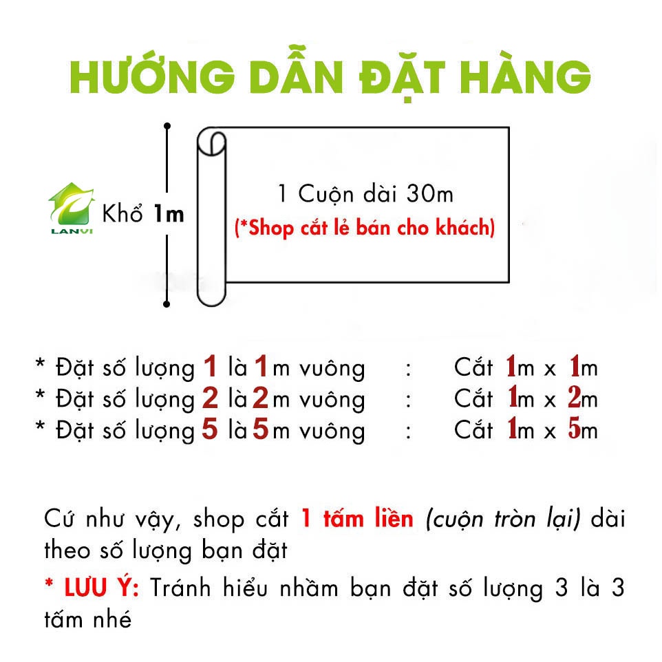 ✔️Cách đặt hàng: ví dụ nhà bạn rộng 4m dài 5m ( 4 x 5 ) = 20m2 bạn đặt số lượng 20 lần là đủ