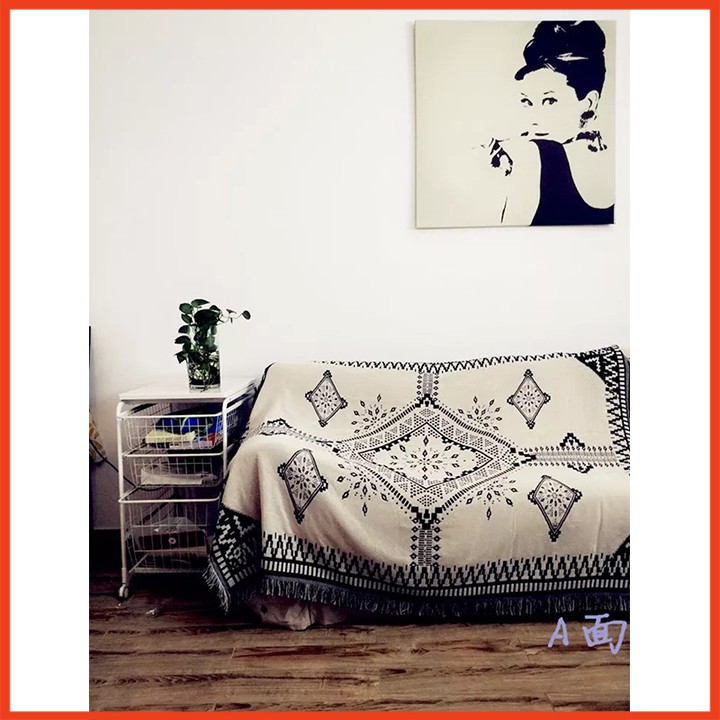 Thảm thổ cẩm hàng dệt 2 mặt có hai hoa văn khác nhau. Phong cách vintage.- Chất liệu dày dặn, tấm thảm nặng hơn 2kg. Giặt thoải mái ko bị ra màu.