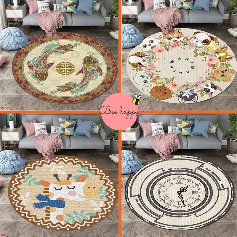 Thảm tròn bali 1mx1m thảm bali tròn, miếng trải sàn BEE HAPPY