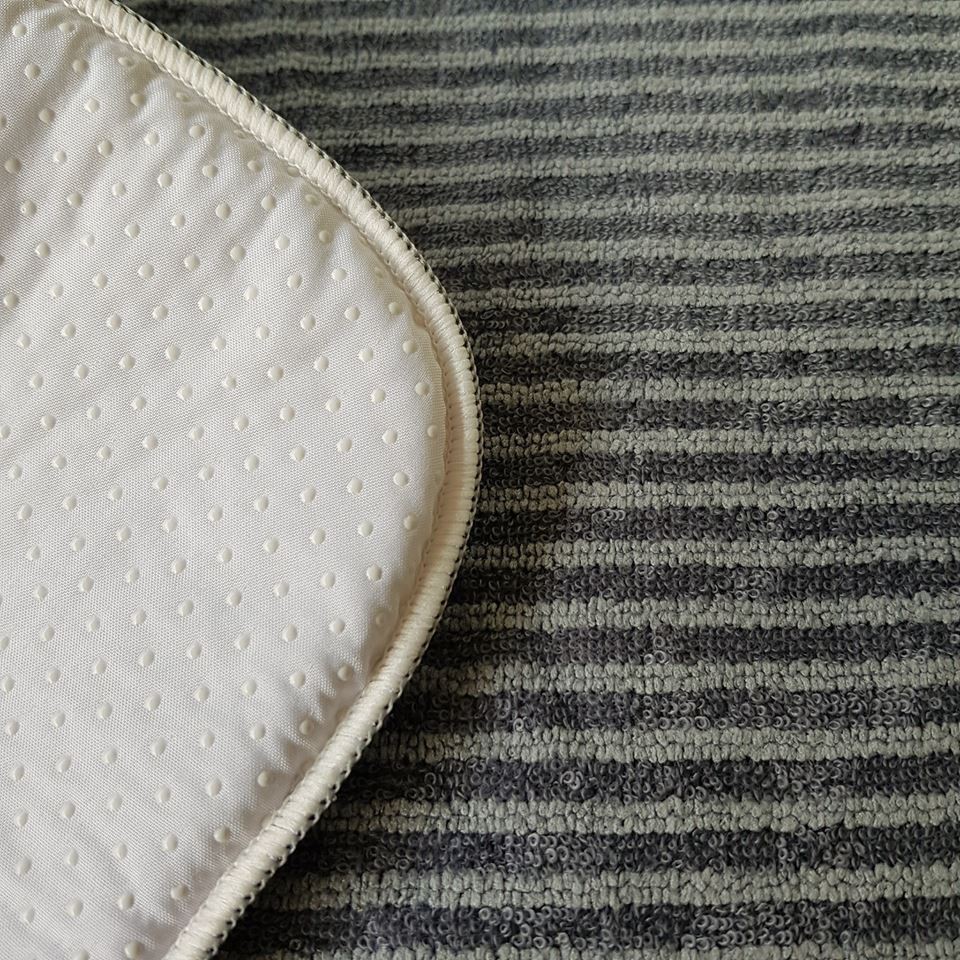 Mặt dưới được thiết kế với lớp cao su có độ ma sát cao, giúp chống trượt. Sản phẩm thích hợp sử dụng ở nhiều không gian: phòng tắm, bếp, phòng ngủ, cửa ra vào.