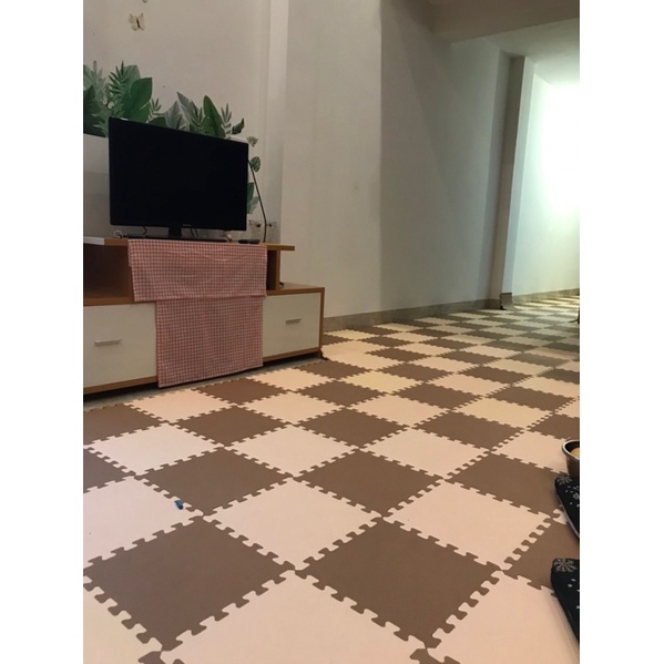 Nhà cửa & Đời sống > Trang trí nhà cửa > Thảm trải sàn || Thảm xốp lót sàn 2 màu nâu và hồng kem 60×60×1cmCòn hàng