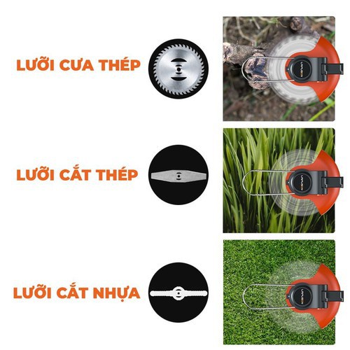 + Lưỡi Cắt Thép: Cắt cỏ dày, bụi cây leo nhỏ,...