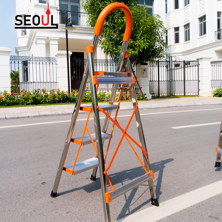 Giới thiệu Thang Ghế Nhôm 4 bậc Hàn Quốc Full inox 304 Tiêu Chuẩn EN131 có hình ảnh thực thế bảo hành 24 tháng