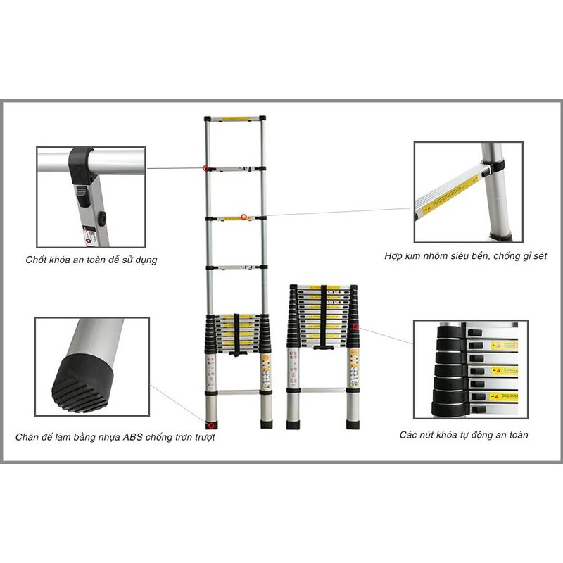 - Thang làm từ chất liệu nhôm dày, chống móp méo, tránh tác động, chịu được lực cao.