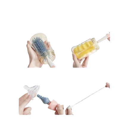 4 chi tiết có những công dụng khác nhau cọ bình sữa, cọ núm ty, cọ đầu nhựa, cọ đầu xốp, giúp mẹ dễ dàng vệ sinh sạch sẽ bình sữa cho bé