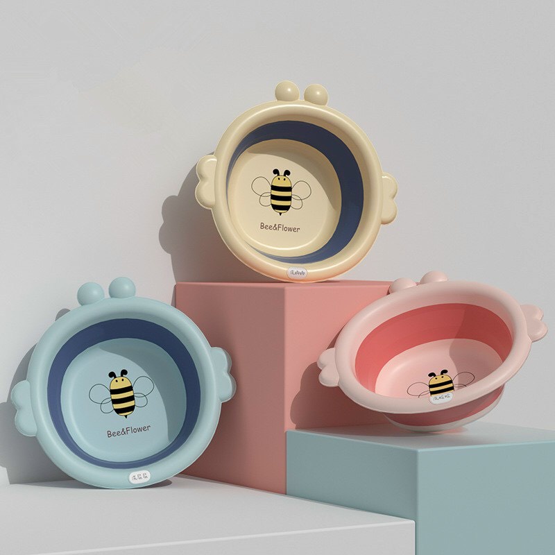 🔸 Đặc Điểm Sản Phẩm thau chậu rửa mặt gấp gọn hình Ong Bee & Flower cho bé✔ Chậu rửa mặt được làm bằng chất liệu nhựa cao cấp hoàn toàn không gây hại khi dùng trong nước nóng