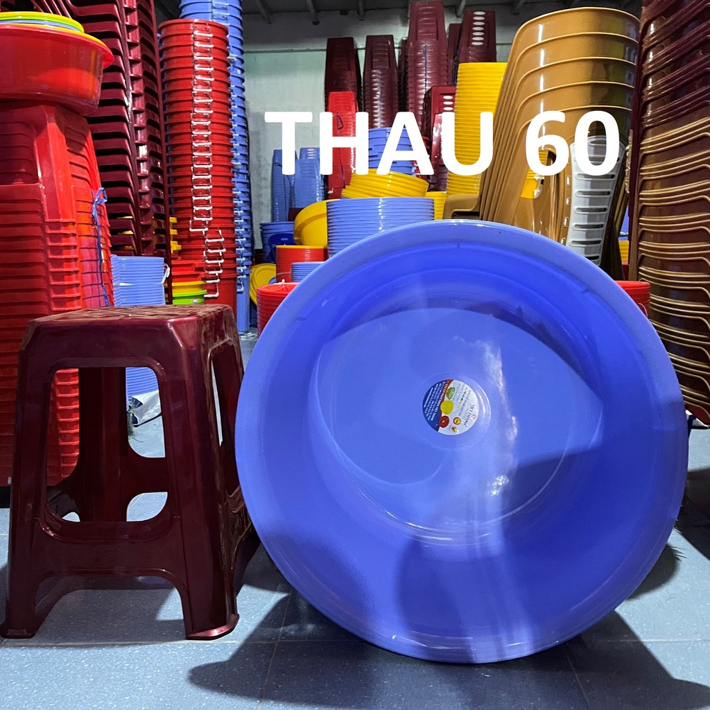 - Thau nhựa tròn size 60 làm từ nhựa chính phẩm PP không gây tương tác có hại cho sức khỏe của bạn, độ bền cao, màu sắc khó phai.