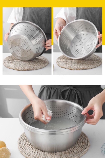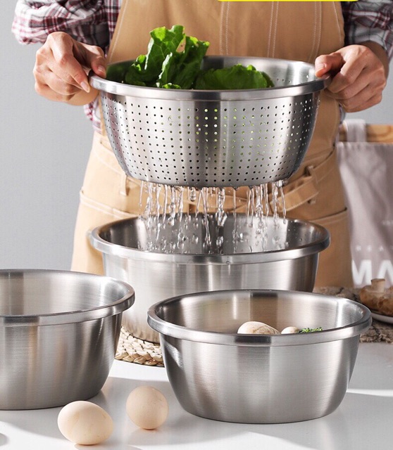 Nhà cửa & Đời sống > Dụng cụ chăm sóc nhà cửa > Chậu, xô & gáo nước || Bộ thau + rổ inox 304Còn hàng