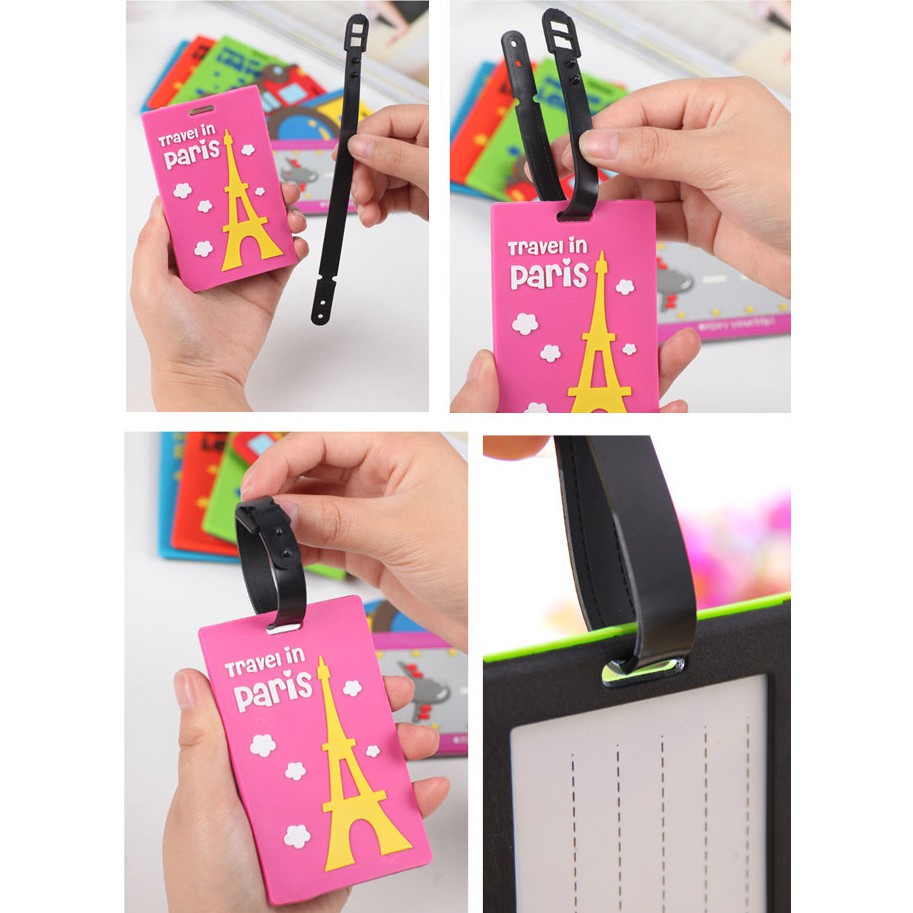 Thẻ thông tin hành lý với kích thước nhỏ gọn, hình dạng ngộ nghĩnh, màu sắc nổi bật là giải pháp hiệu quả khi bảo quản hành lý.- Thẻ có phần móc đeo chắc chắn giúp bạn có thể dễ dàng đeo vào hành lí ở những vị trí dễ nhận thấy như quai xách, quai đeo...