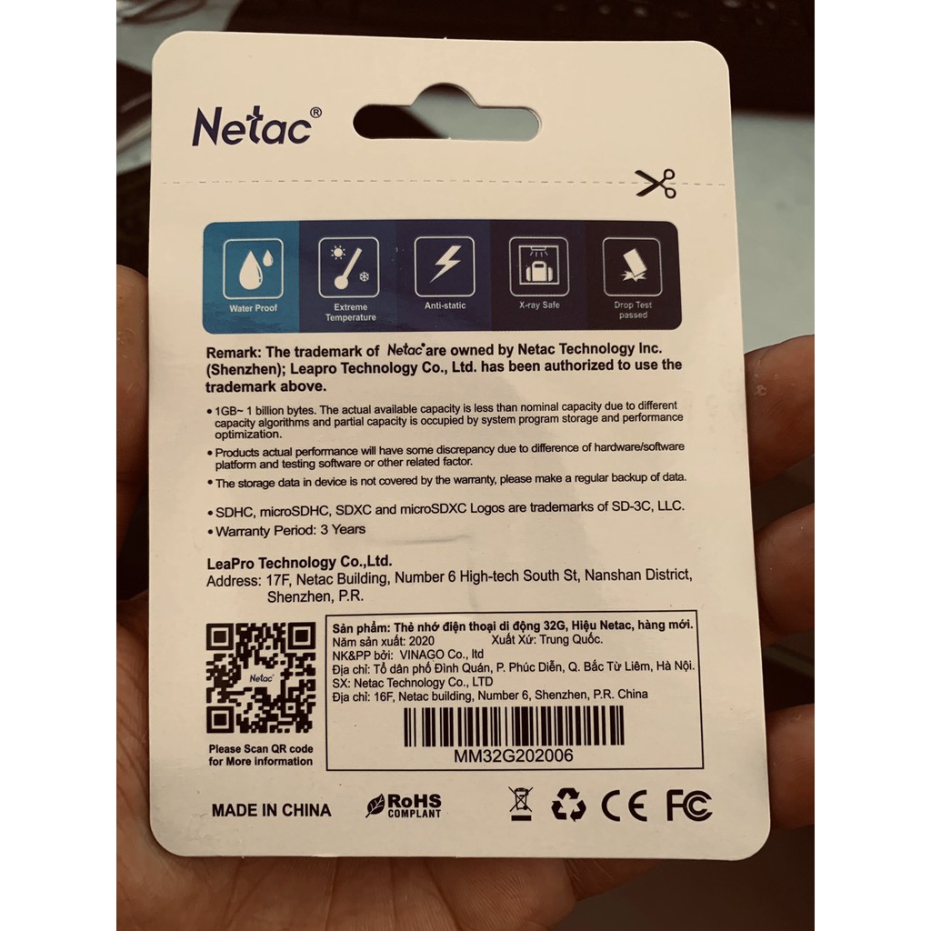 THẺ NHỚ 32GB NATECThẻ nhớ Micro SD Netac 32GB giá tốt, cam kết chính hãng 100%, giả 1 đền 10, cam kết nhập khẩu chính ngạch 100%, ủy quyền từ hãng