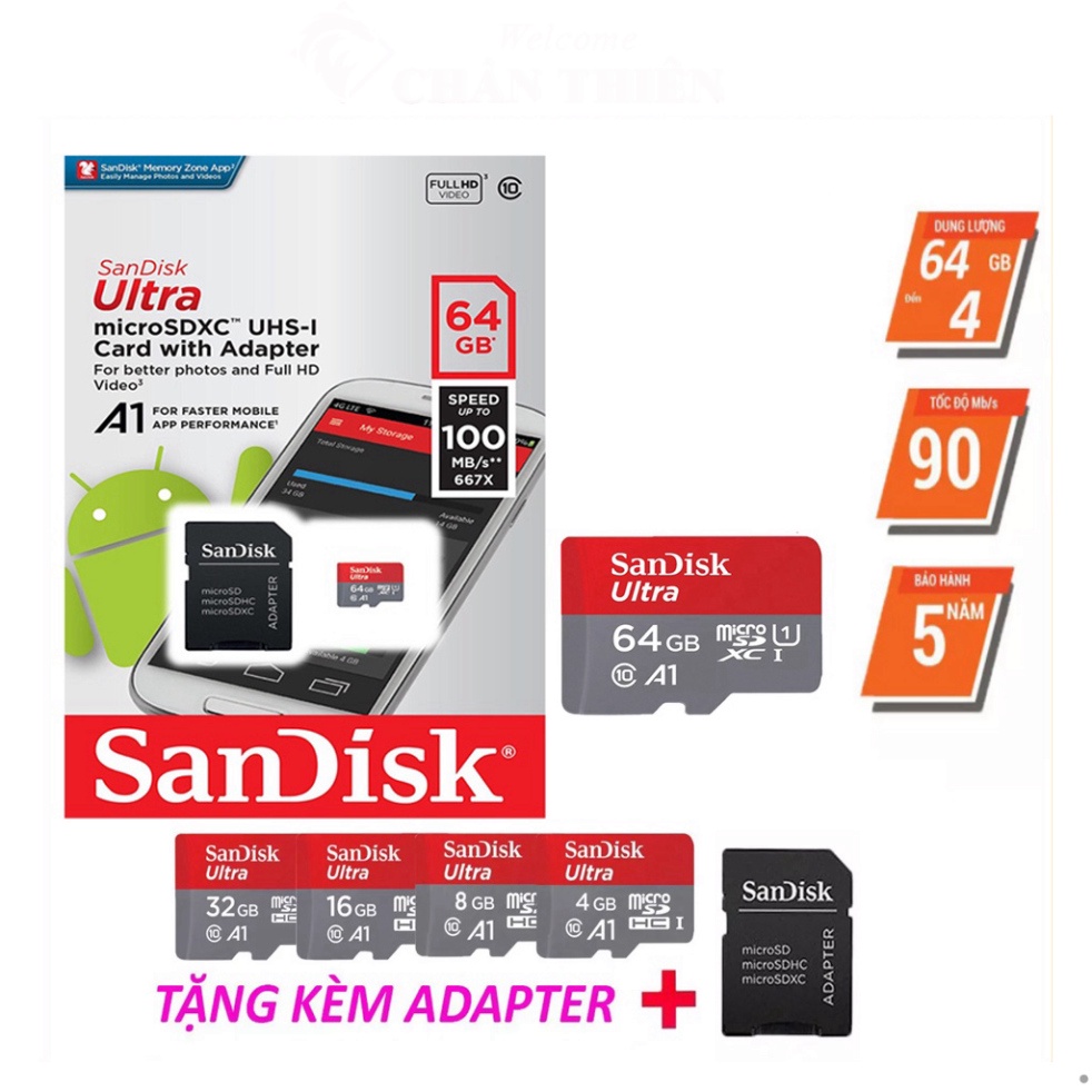 Giới thiệu Thẻ nhớ 64GB 32GB 16GB Micro SD SanDisk tốc độ 100 MB/s chuyên dụng cho camera smartphone loa đài BẢO HÀNG 5 NĂM
