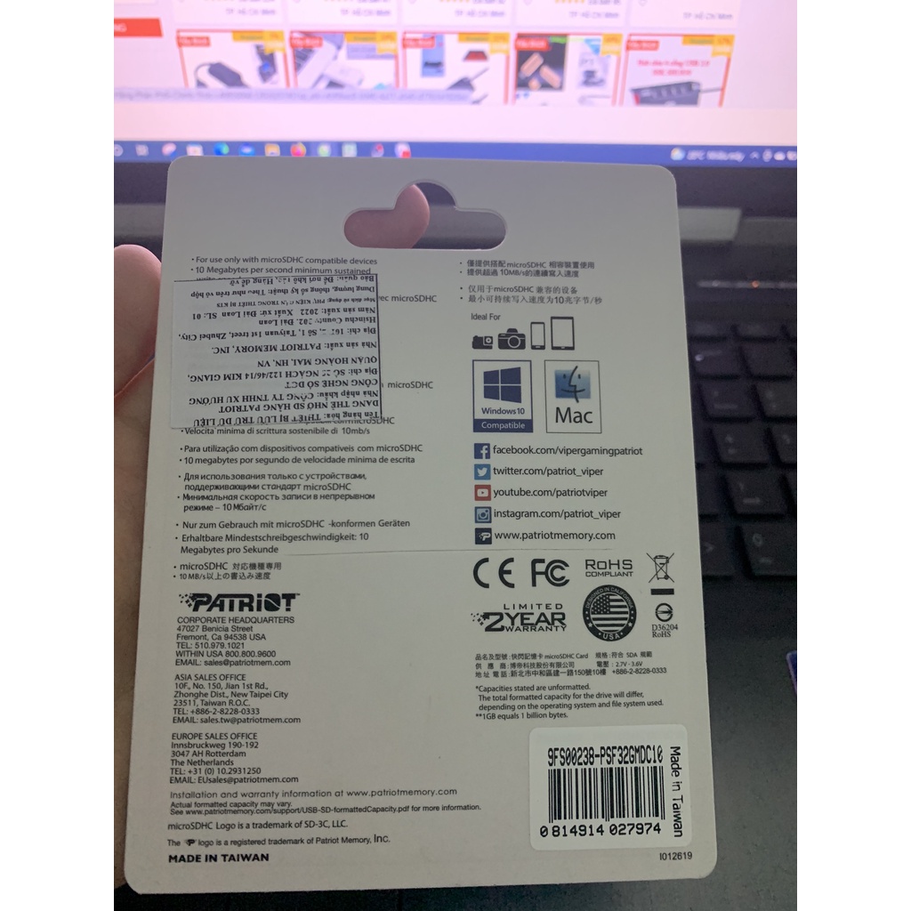 • Loại thẻ nhớ: Micro SD• Hãng sản xuất: Patrot