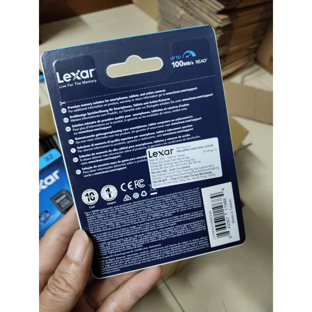 * Thông tin sản phẩm:- Tên sản phẩm: Thẻ nhớ Lexar MicroSDHC UHS-I 32Gb / 64Gb / 128Gb Class 10 100MB/s