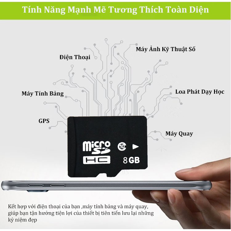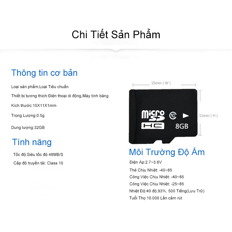 Tên sản phẩm:Thẻ Nhớ Micro/SD Class10Chịu nhiệt dùng cho các thiết bị có dùng Thẻ TF