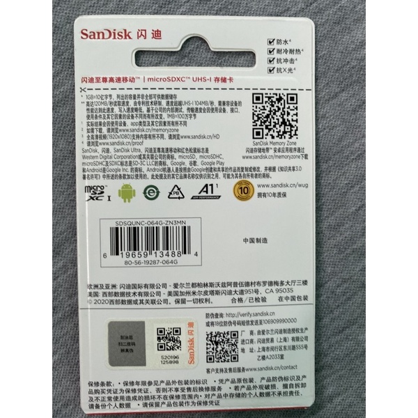 Được thiết kế để chịu được điều kiện khắc nghiệt nhất, thẻ nhớ MicroSD Ultra A1 đã được thử nghiệm với rất nhiều qui trình trong nhiều điều kiện rất khắc nghiệt. Không thấm nước, chống nhiệt, chống sốc, chống tia X-ray, và chống từ trường nam châm, vì vậy dữ liệu của bạn luôn luôn được an toàn tuyệt đối.