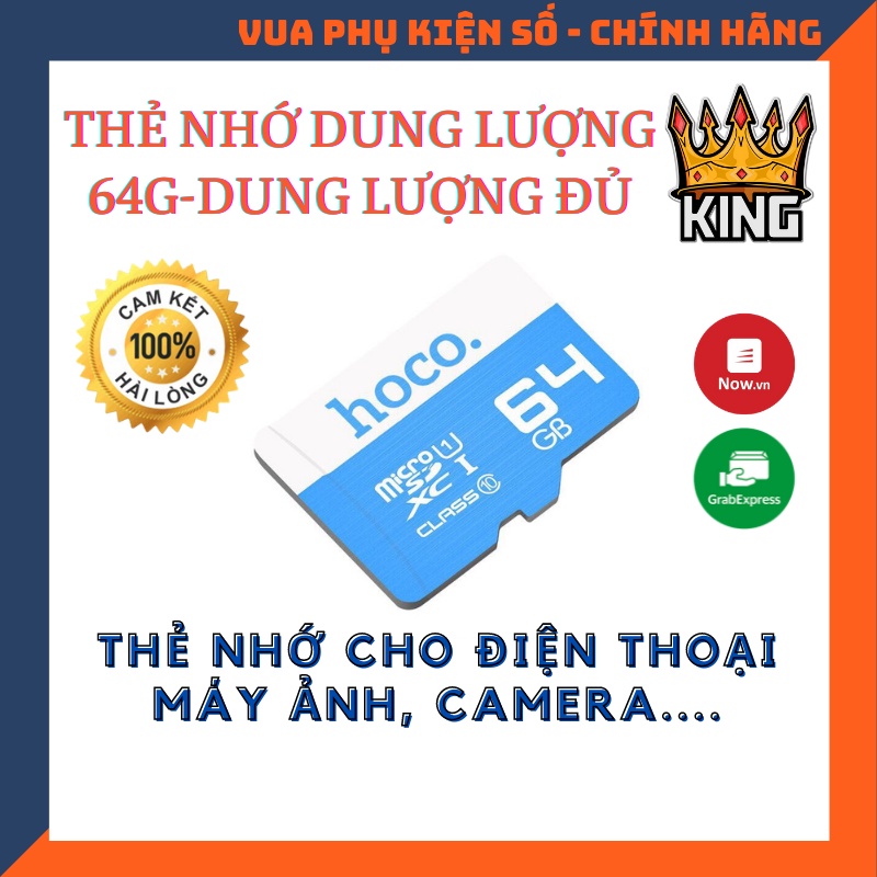 -Thẻ nhớ Micro SD Hoco có dung lượng lên đến 64GB, mang đến cho người dùng không gian để lưu trữ tài liệu, hình ảnh và game.